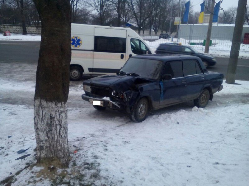 Автомобіль рухався вулицею Конякіна, в сторону Варшавського ринку. Водій не впорався з керуванням та влетів у дерево. Від удару у легковика розтрощило передню ліву фару.