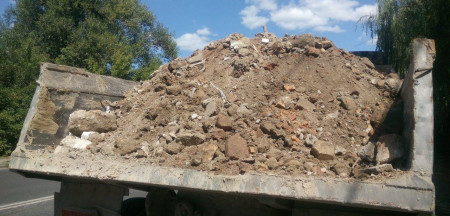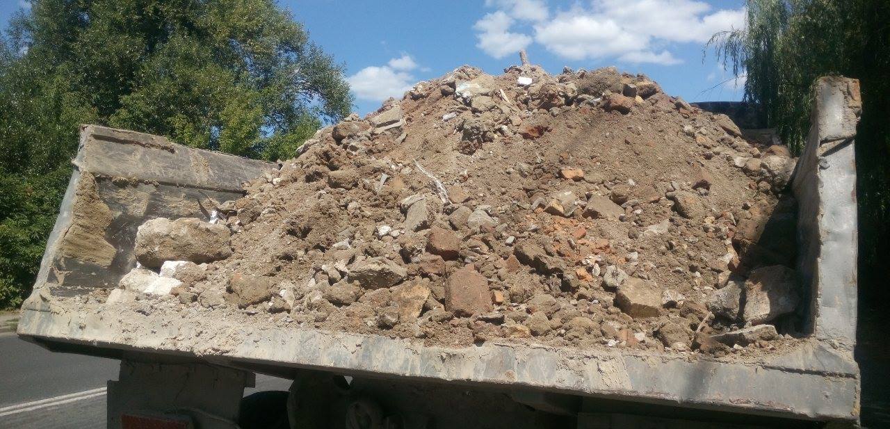 З машини на дорогу вилітали великі шматки будівельного сміття та різних сумішей.