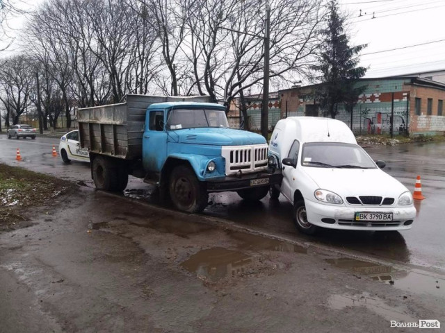 У Луцьку вантажівка з піском в’їхала в Lanos