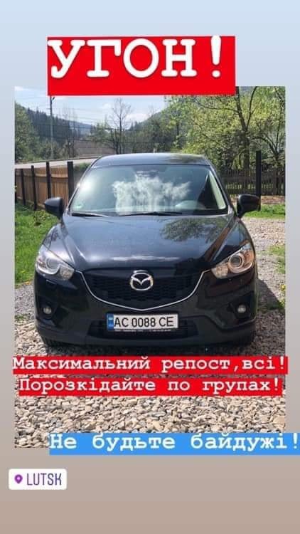Як йдеться у дописі Sergiy Romaniyk у соціальній мережі Facebook, автомобіль Mazda CX5 2012 року випуску викрали 2 грудня о 2:43 з двору по вулиці Іващенка, 2.