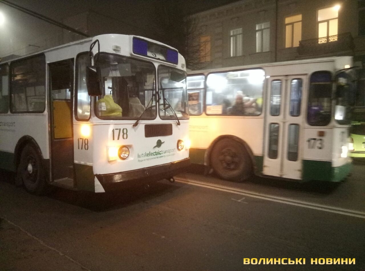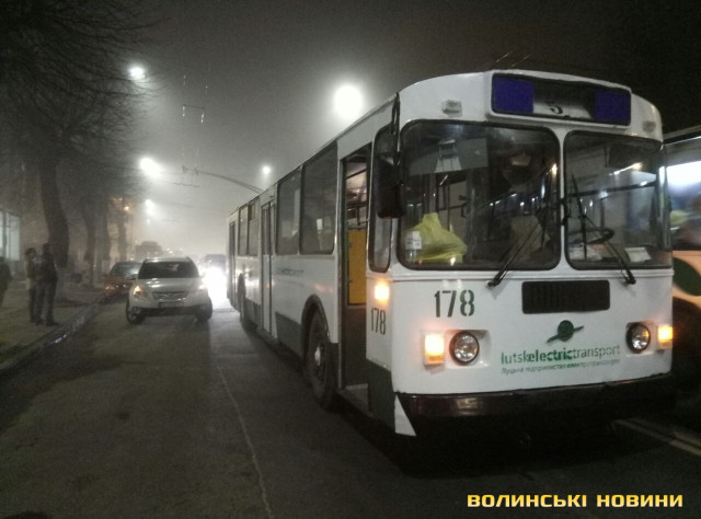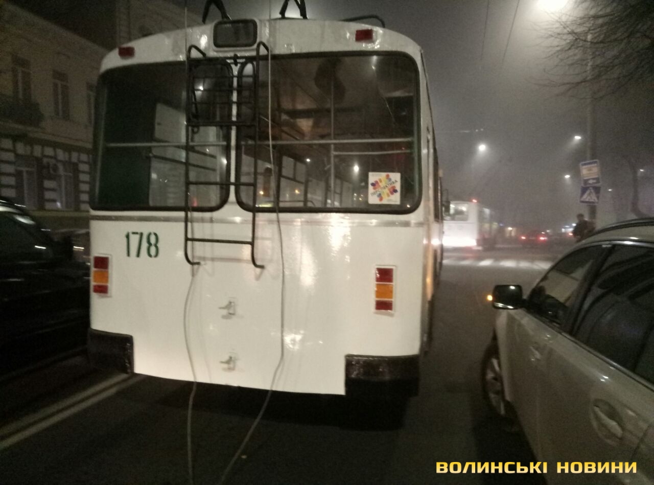 У центрі Луцька легковик зіткнувся з тролейбусом