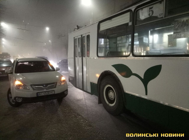Дорожньо-транспортна пригода за участю тролейбуса та легковика Subaru сталася у центрі Луцька, вечірньої пори 9 листопада.