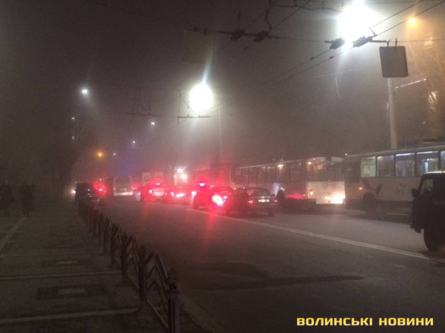 Станом на 18:30 у центрі міста утворився невеликий затор, оскільки тролейбуси змушені призупинити рух.