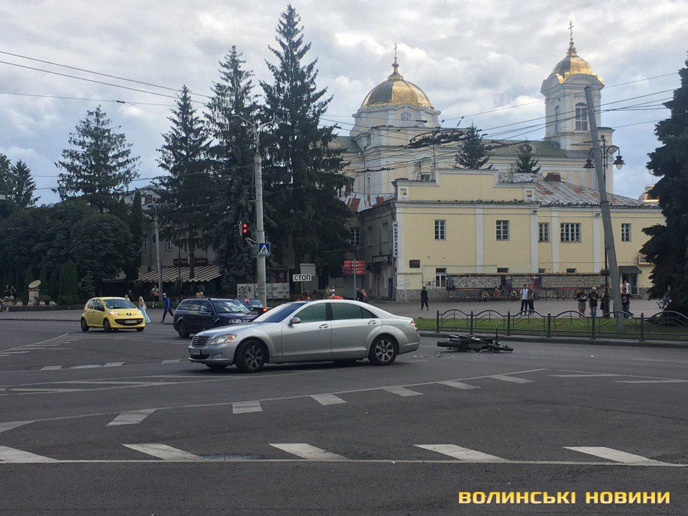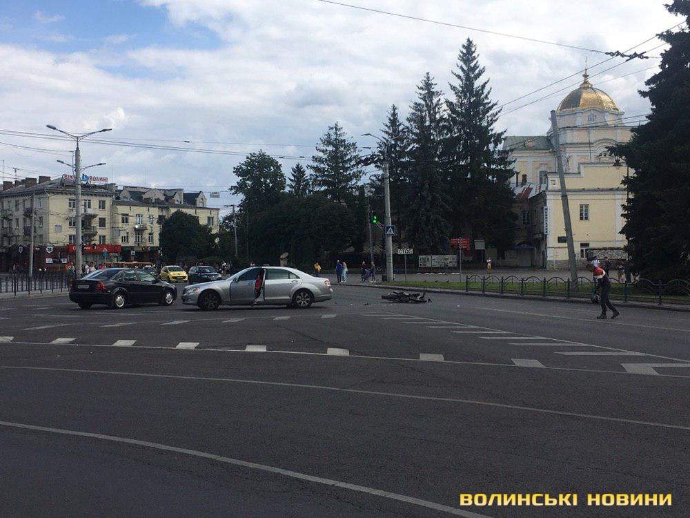 У центрі Луцька мотоцикліст влетів у Мерседес. Фото
