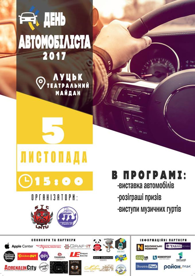 З нагоди Дня автомобіліста у Луцьку на Театральному майдані відбудеться автомобільне свято, а саме - виставка крутих авто.