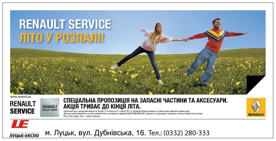 В автосалоні «Луцьк-Експо» стартувала акція «Літо у розпалі» - власникам автомобілів Renault пропонують вигідні ціни на запасні частини та аксесуари.