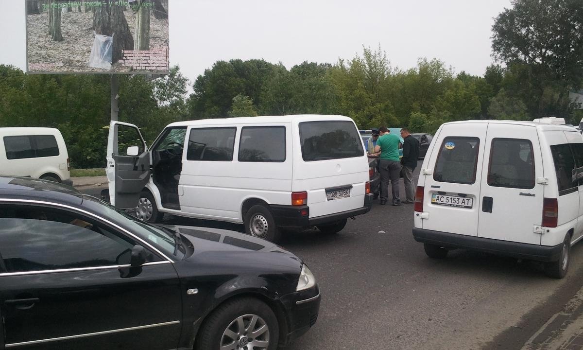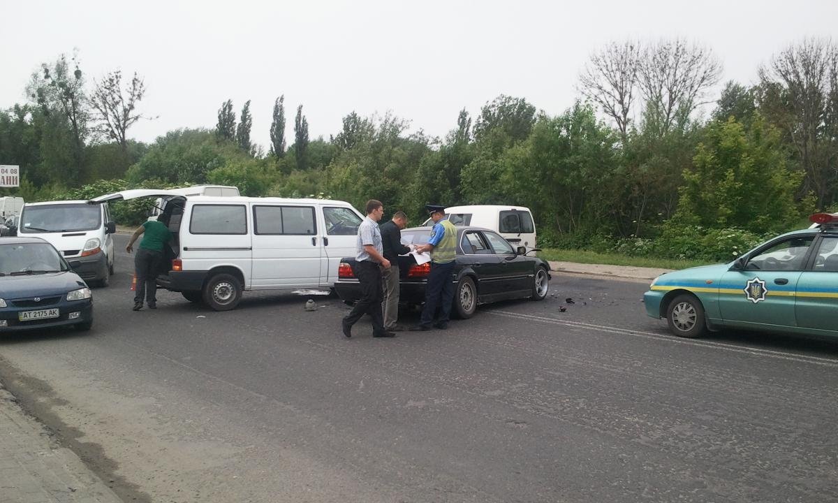 На фото видно: зіткнулися автомобіль марки BMW та Volkswagen Transporter.