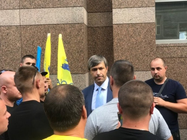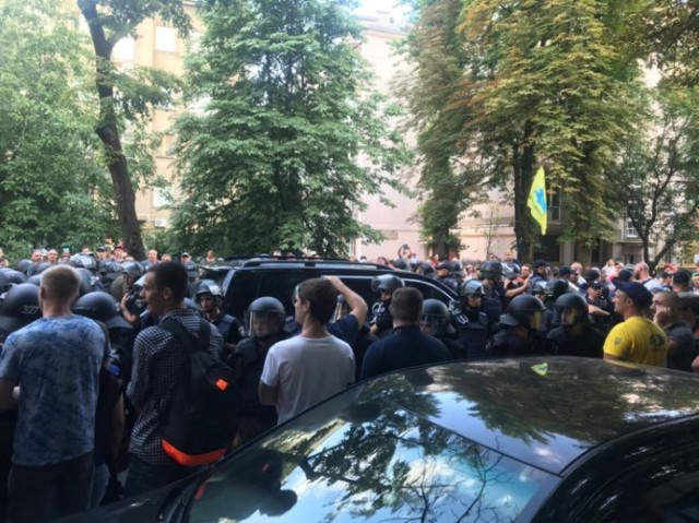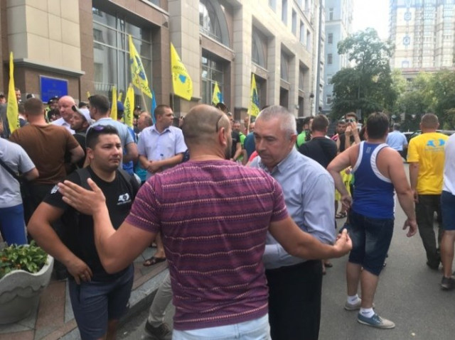 На вулиці Інституцькій сталася сутичка мітингувальників з депутатом Михайлом Гаврилюком, учасники акції кинули його на землю і ледь не побили.