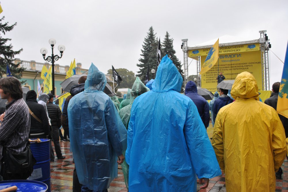 Автомобілі перекрили вулицю Грушевського - від Європейської площі до будинку парламенту. Всі припарковані у три ряди. Власники вимагали відмінити акциз на ввезення авто на іноземній реєстрації, пропонували скасувати норми Євро-5 для старих машин і ввести техогляд для них. Ще одна вимога - припинення переслідувань авто на «євро бляхах» з боку правоохоронців.