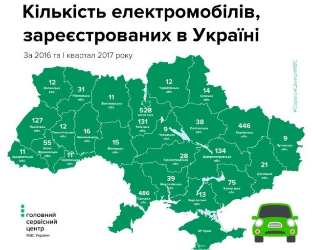 Найбільший попит на електромобілі за даними сервісних центрів МВС прослідковується у Києві, в Одеській та Харківській областях, слідом йдуть Дніпропетровська, Львівська, Київська та Запорізька області. Волинь у цьому рейтингу відверто «пасе задніх», ділячи останні місця з Закарпатською, Житомирською, Тернопільською областями.