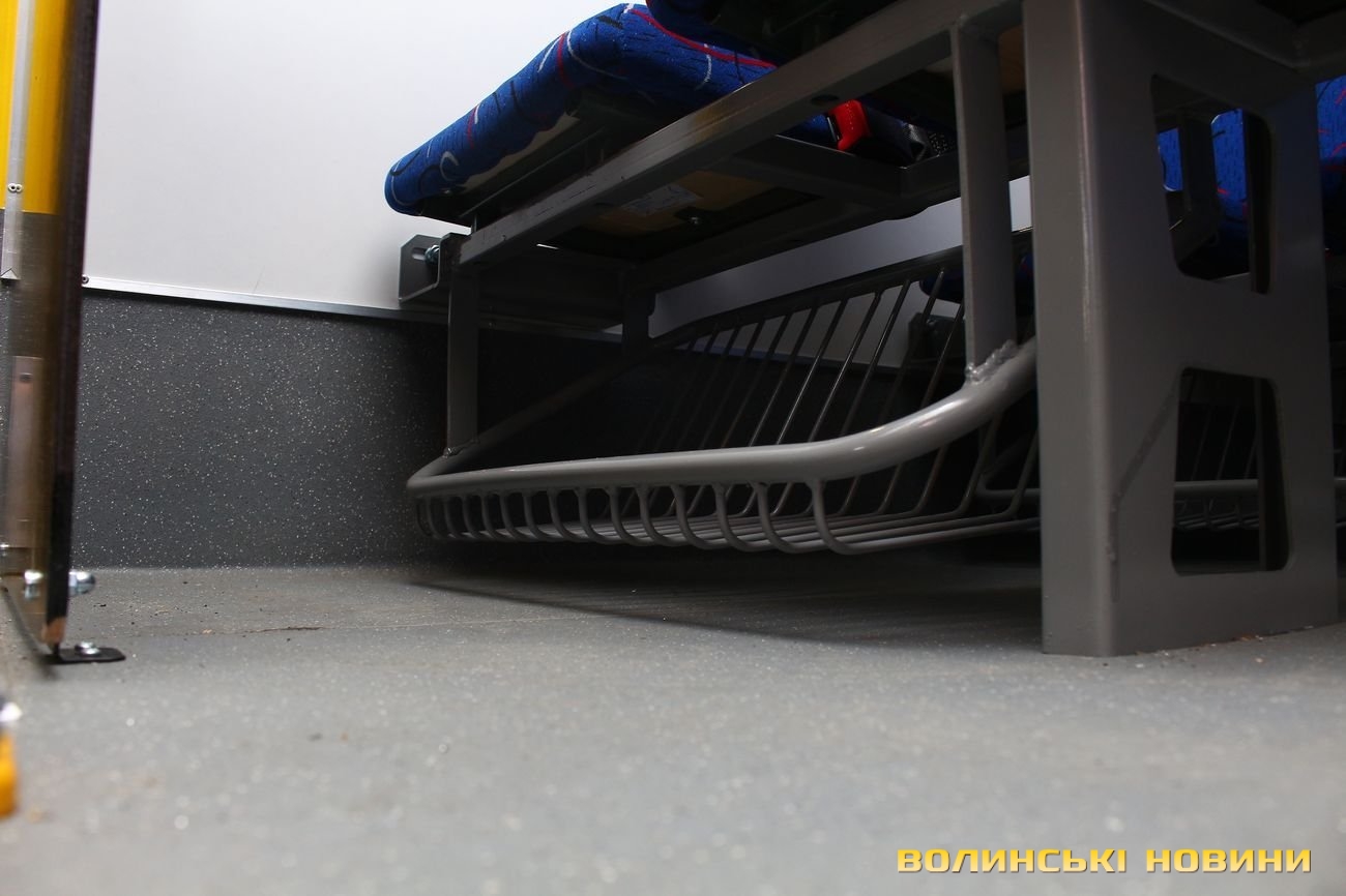 Транспортні засоби відповідним чином адаптовані для перевезення учнів. Проте сидіння, вочевидь, не передбачені для перевезення на довгі дистанції. Разом з тим, кожне сидіння обладнане ременем безпеки, під ними – спеціальні відсіки для ранців та наплічників.