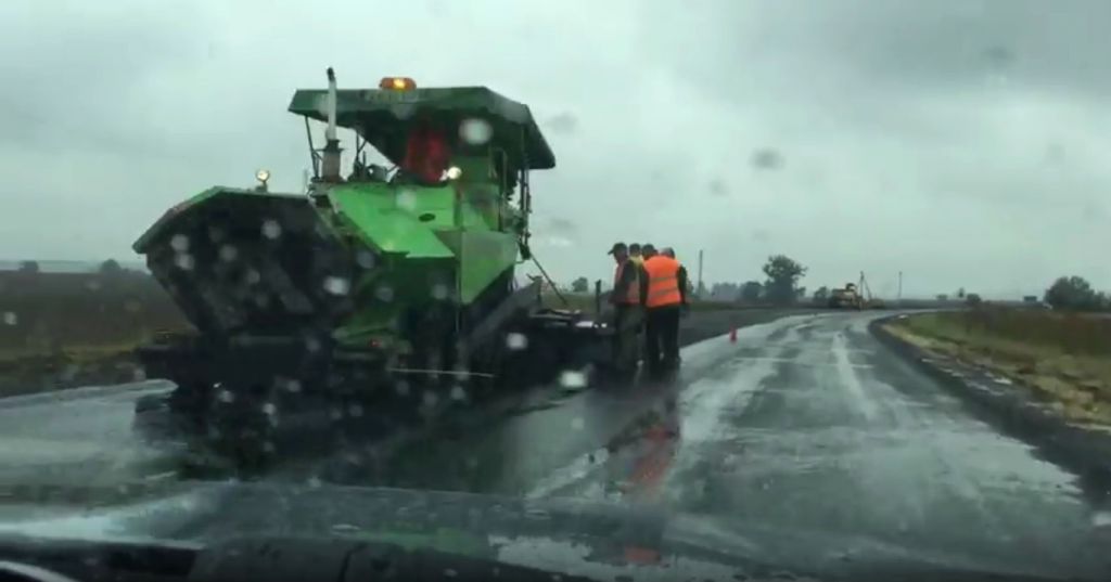 “Це були підготовчі роботи до ремонту, так званий вирівнюючий шар. Це ямковий ремонт не можна робити в дощ. А вирівнюючий шар можна класти, бо температура асфальту 160 градусів, і як там трохи мокре покриття, то вода випарується. Самі ж ремонтні роботи розпочнуться завтра-післязавтра (7-8 вересня – ред.). Ми привезли 220 тонн гарячого асфальту і коли почали роботи, то дощу не було. Коли він почався – ми його перечекали і продовжили роботи. Асфальт в прицепах був накритий бризентами і йому нічого від цього не сталось. Не вивозити ж цей асфальт і викидати, бо розпочався трохи дощ?”, – розповів Микола Хільчук.