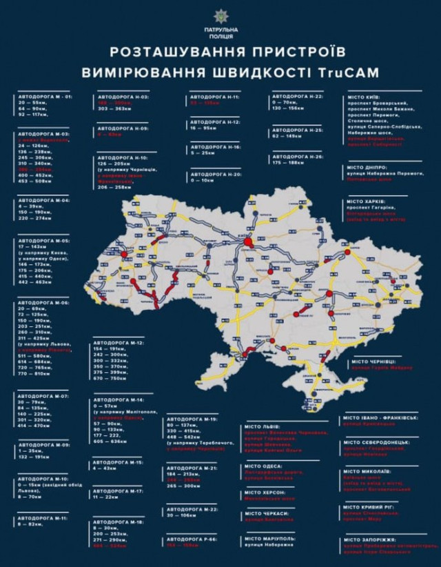 З понеділка, 13 травня, кількість радарів TruCam, які фіксують швидкість на українських дорогах, зросте до 100.