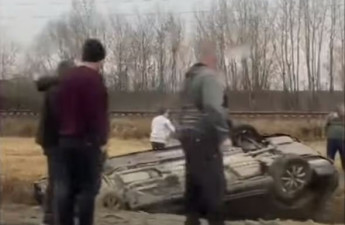 На Волині легковик злетів з дороги та перекинувся на дах. Відео