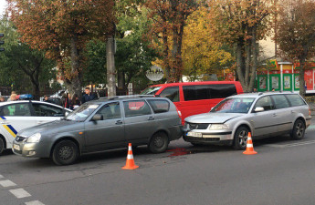 Дорожньо-транспортна пригода за участю мікроавтобуса Volkswagen Transporter та автомобіля Ford Focus трапилось сьогодні 29 вересня близько 13 години на проспекті Соборності
