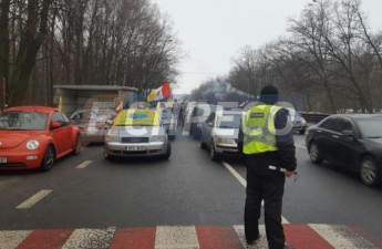 Кілька десятків людей та автомобілів зібралися на в'їздах до Києва на Бориспільській, Житомирській, Варшавській і Одеській трасах та заблокували по одній і дві смуги на дорогах