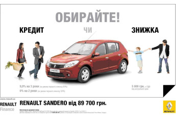 В автоцентрі «Луцьк-Експо» діє спеціальна пропозиція на автомобілі Renault Sandero: кожен покупець сам вирішує, що йому вигідніше обрати – кредит чи знижку