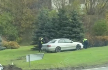 Подія трапилася вдень 25 жовтня. За попередньою інформацією, водій не впорався з керуванням – автомобіль збив дорожній знак і зупинився на клумбі.