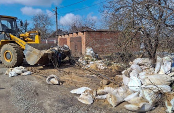 Старі автомобільні шини і мішки із піском прибрали біля кільця на вулиці Дубнівській.