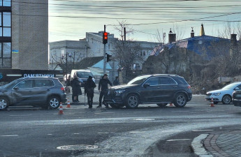 Зі слів свідків, автівка «Фольксваген» зіткнулася з «Джилі». Потому у «Фольксваген» в’їхав «Мерседес». На місці працюють патрульні.