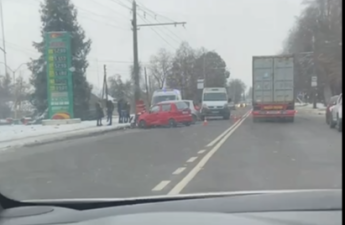 Навпроти АЗС «Айслаг» зіткнулося три авто: «Рено Сценік», «Деу матіз» та ВАЗ. На місці працюють швидка і поліція. Попередньо в аварії є постраждалі.