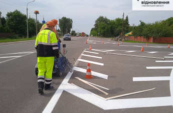 Освіжають маркування по осі проїзної частини, на пішохідних переходах, острівцях безпеки тощо. Працюють насамперед на пріоритетних маршрутах.
