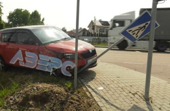 У селі Рованці, що біля Луцька, вранці 20 червня зіткнулося два автомобілі Skoda. Одна автівка від удару відлетіла у дорожній знак та погнула його.