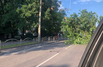 У Луцьку дерево повалилося на дорогу і обірвало тролейбусну лінію. Відео