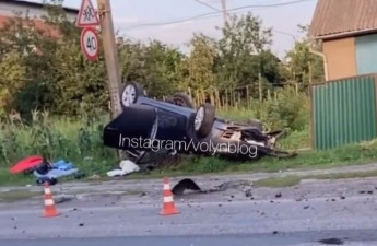 На Волині «Мазда» влетіла у стовп та перекинулась на дах