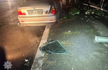 На Волині водійка BMW збила вуличний ліхтар на узбіччі