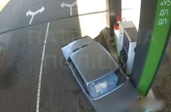 У селі біля Луцька п'яний водій на АЗС наїхав на паливну колонку. Відео