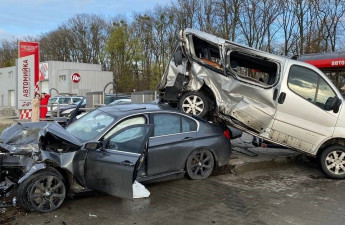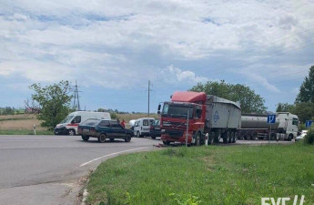 Біля заправки AMIC у Нововолинську трапилась ДТП за участю вантажівки DAF та легковика марки Опель