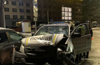 У центрі Луцька службова автівка патрульної поліції врізалася у припаркований Renault. Автомобілі зазнали значних механічних пошкоджень.