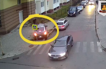 Камери зафіксували, як водій у Луцьку погнув дорожній знак та втік. Відео