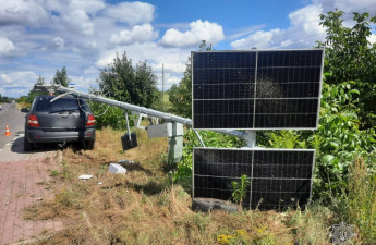 У Луцьку авто знесло відбійник та стовп із сонячною панеллю