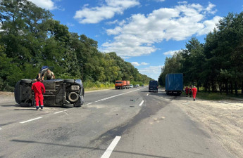 Біля Луцька перекинувся бус, рух частково ускладнено. Відео