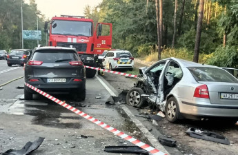 У Голосіївському районі Києва сталася масштабна аварія за участю дев’яти автомобілів: Jeep, Skoda, двох Honda, Kia, два Volkswagen, Ford і Renault