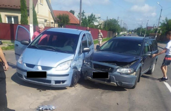 Водій не зупинився на знак: на Волині зіткнулися Volvo та Mitsubishi. Фото