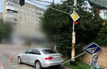 У Луцьку водійка, здаючи назад, виїхала на тротуар і збила дорожній знак