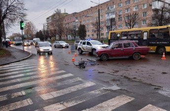 У Луцьку на повороті ВАЗ збив велосипедиста. Фото