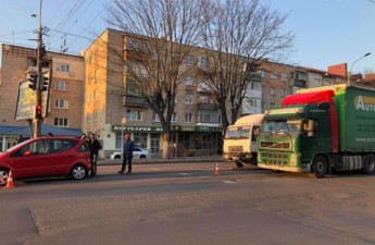 У Луцьку на переході зіткнулися Мерседес та вантажівка. Фото