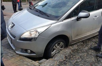 У центрі Луцька під автомобілем провалилась бруківка. Фото