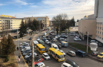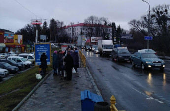 Підприємці Старого ринку натовпом вийшли на проїжджу частину, що навпроти приміщення Луцької міськради, та заблокували рух транспорту.