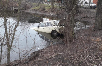 В центрі Рожища у водоймі втопили автомобіль. Фото