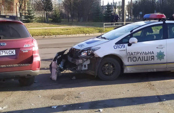 У Луцьку трапилась дорожньо-транспортна пригода за участю легковика Subaru та авто патрульної поліції.