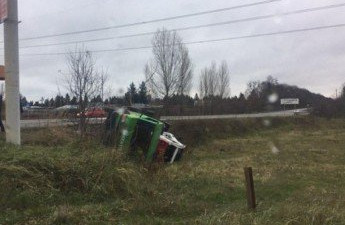 У Струмівці евакуатор з навантажувачем перекинулись у кювет. Фото