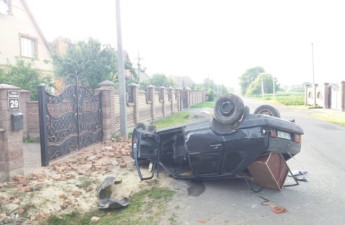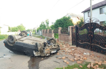 Автомобіль ВАЗ 2109 у селі Гірка Полонка Луцького району під ранок 16 червня влетів в яму, а після цього розтрощив огорожу біля будинку та перекинувся на дах