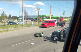 ДТП за участю мотоцикла та автівки сталася у суботу, 21 червня, на вулиці Ковельській в Луцьку.