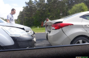 11 травня на з'їзді з Повітрофлотського мосту в Києві сталося лобове зіткнення двох автомобілів. Поліцейський Toyota Prius і BMW не поділили дорогу і на повному ходу врізалися лоб в лоб.