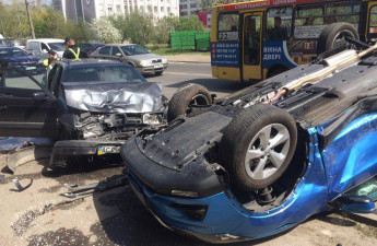 На 40-му кварталі у Луцьку трапилось ДТП за участі двох автівок, одна з них перекинулась.